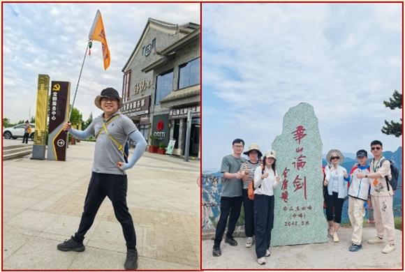 途中,大家或三兩好友結(jié)伴同行;或幾人前后跟隨;或駐足留念拍照,一覽華山全貌,不禁學(xué)著導(dǎo)游的口音玩笑一句:“這就是額給你們打下的江山啊!”
